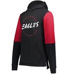 * 7.6 ounce 55% polyester/41% cotton/4% rayon, super soft fleece * Woven label * Jersey lined hood * Set-in sleeves * Front pouch pocket * Spandex blend rib-knit cuffs * Open bottom * Dropped tail * Side vents