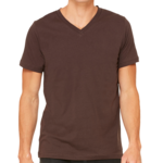 Bella+Canvas Unisex 4.4 Ounce Jersey Short Sleeve V-Neck T-Shirt. Sideseamed. Retail fit. Unisex sizing. Shoulder taping. Tear Away Label. Solid Colors: 100% Airlume Combed and Ringspun Cotton, 32 singles 4.2 oz. (Ash  99/1% Airlume Combed and Ringspun Cotton/poly; Athletic Heather  90/10% Airlume Combed and Ringspun Cotton/poly; All other Heather CVC/Blend colors  52/48% Airlume Combed and Ringspun Cotton/poly. Marble Colors: 91/9% Airlume Combed and Ringspun Cotton/poly, 30 single 4.0 oz. Neon Colors: 52/48% Airlume Combed and Ringspun Cotton/poly, 40 single 3.6 oz. Slub: 50/37.5/12.5 poly/Airlume Combed and Ringspun Cotton/rayon. Mineral Wash (due to specialized washing process, each shirt is unique): 100% Airlume Combed and Ringspun Cotton, 32 Single 4.4 Oz.